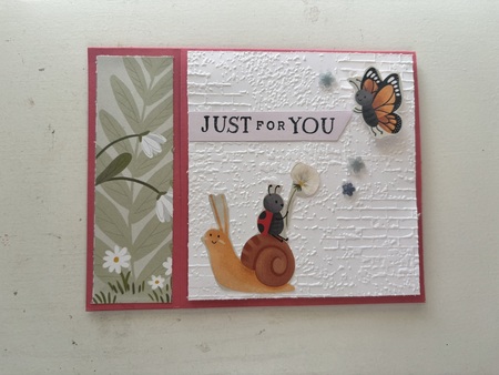 Cute can be simple! Using these adorable little bugs and an embossed background, we can have a sweet card in minutes.
